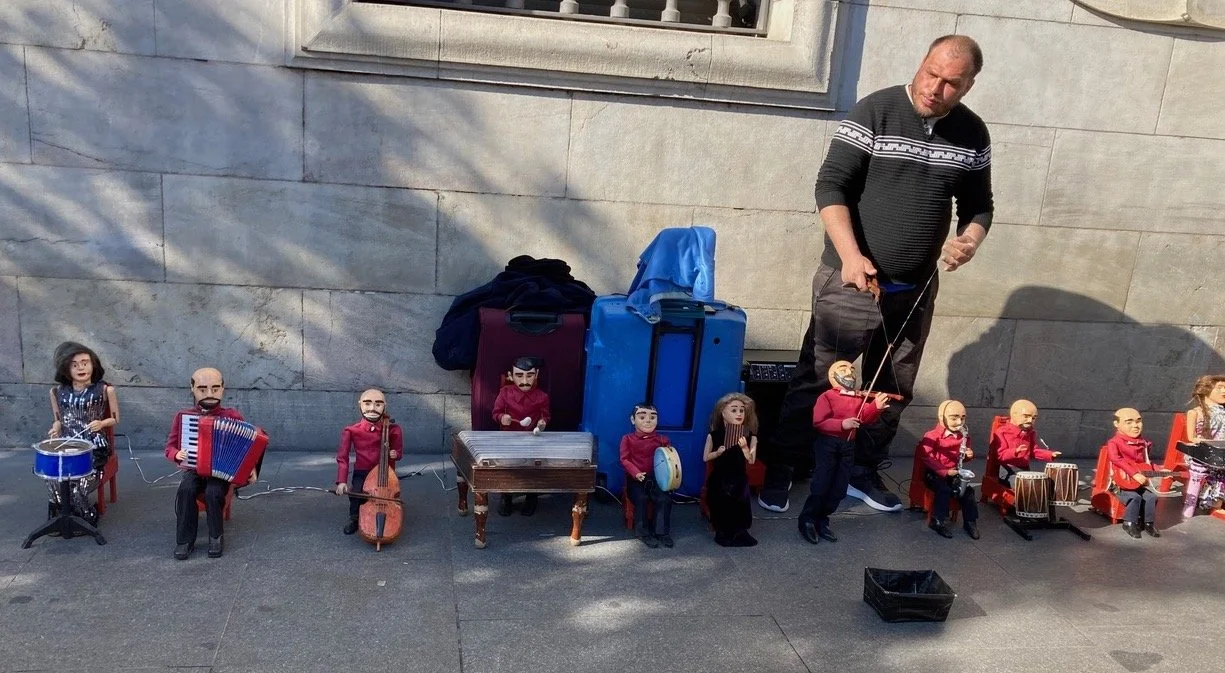 There was still more music up the street, but this time it sounded like a whole orchestra. As we got closer to the sound, I could see that it was, indeed, an orchestra with a violin soloing. The violin was lilting and lovely but instead of seeing a human playing the stringed instrument, we saw a miniature ensemble of characters, one being a male figure with a bald head, dressed in a red shirt and black pants, standing and playing a violin, controlled by a puppet master who stood behind the little guy. There were a variety of small and colorful characters ready to play instruments when the puppet master determined who played what and when. It was an extraordinary experience. I could have been entertained for hours, except for the fact that the rest moved on and I didn’t want to be left behind.