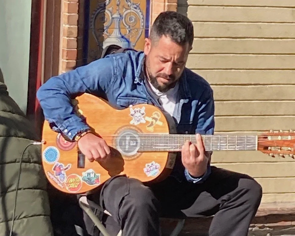 On the pedestrian side of the street, we began hearing toe-tapping music. As we approached the source, there were three young men playing their guitars and singing Spanish tunes which made me want to dance. But we just stood, watched, and listened, throwing some coins into a can to show our appreciation. I could have spent more time there, but the others wanted to move on.