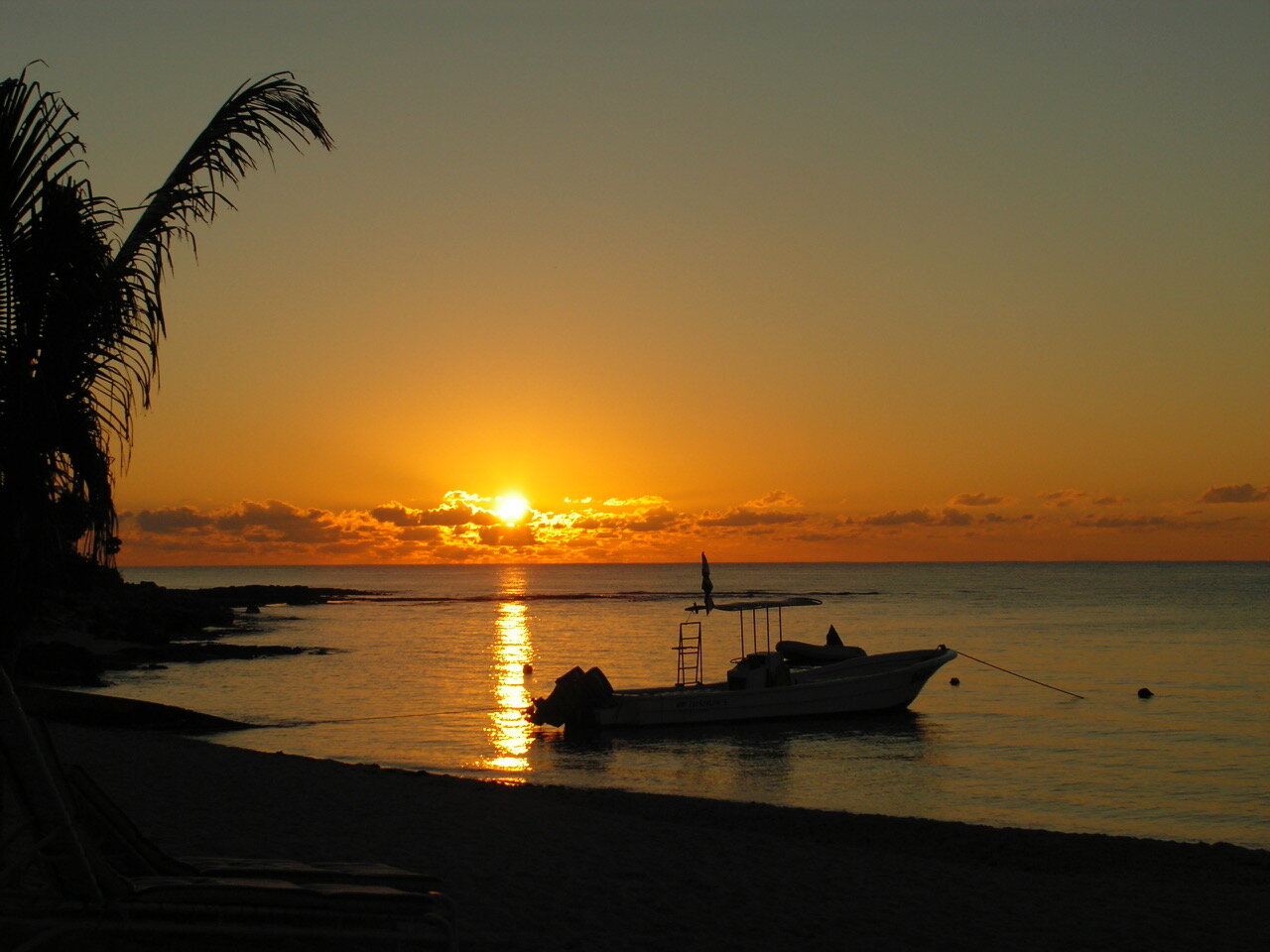 The sunrises over the dive boat in CaraMul, Mexico