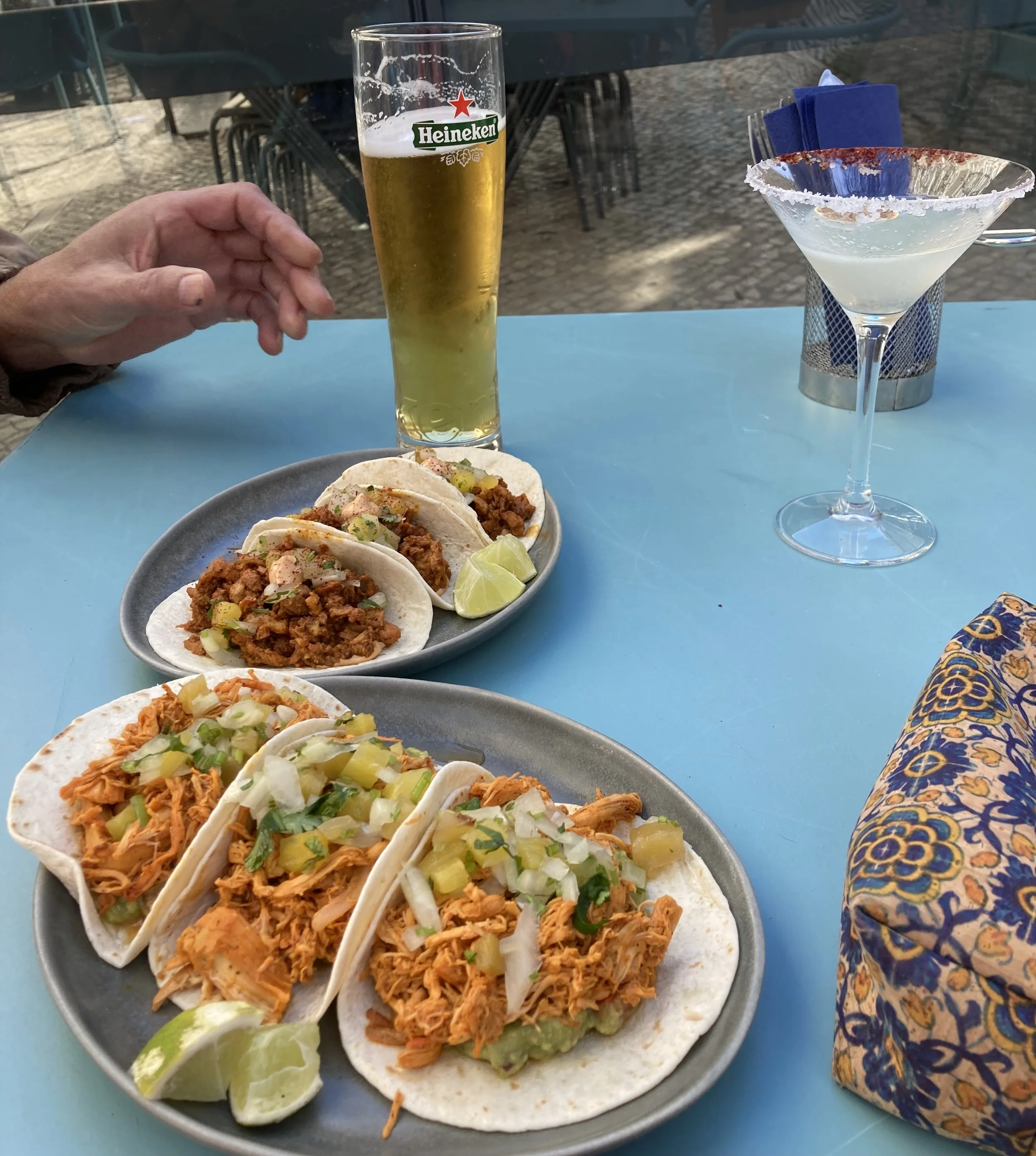 Tacos and drinks — A marvelous Spanish meal — Photo by J. Sharland Day