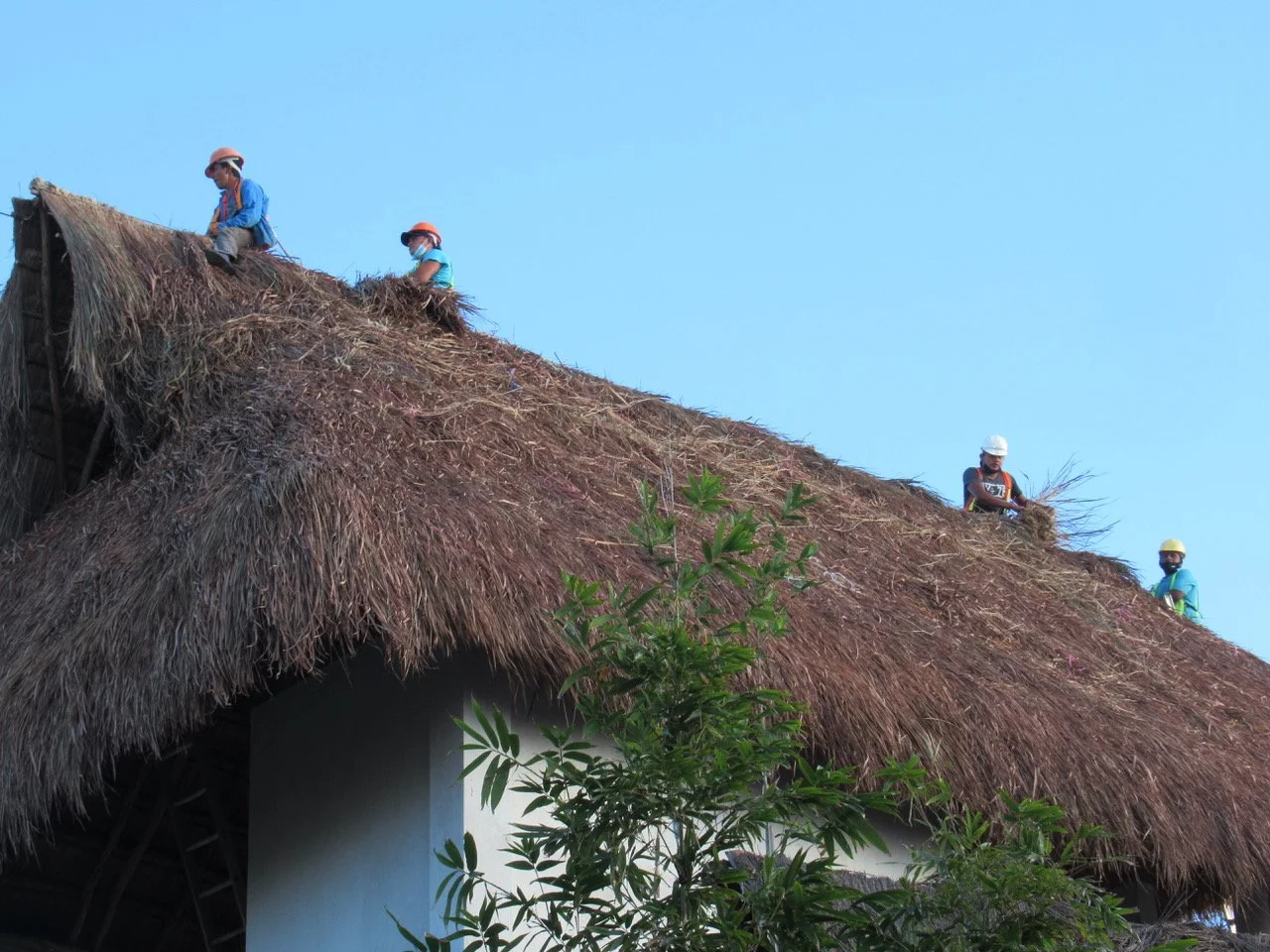 A roof that is thatched with dried palm leaves