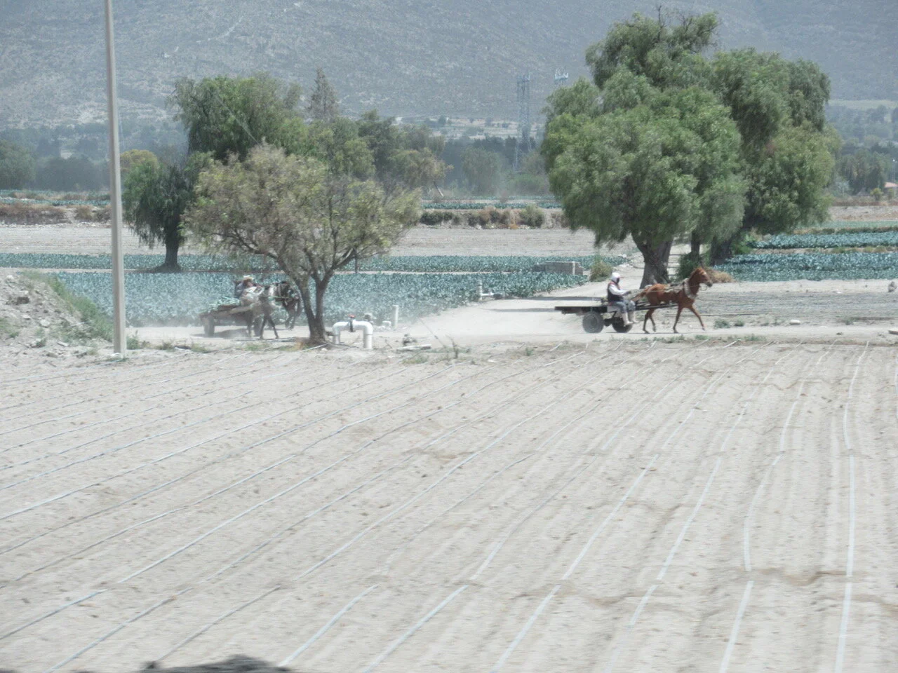 From the canyon to the plateau, we passed green to brown, as fields appeared of furrowed ground. Farmers driving horses that were pulling carts, an old-fashioned custom that seems quite an art. “Farmer’s Blues” came to mind by Stuart and Haggard, and I wondered if these crops are yearly or staggard.